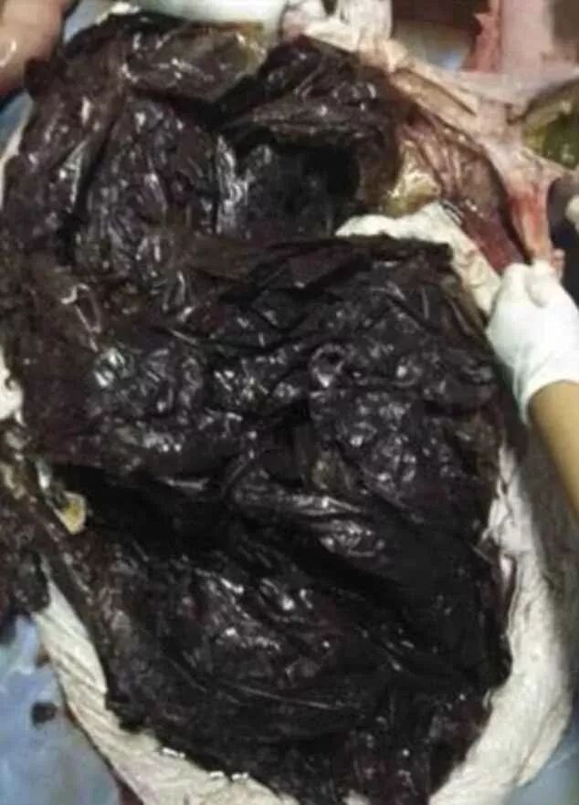 & c, g9 ~8 w7 I1 Y# Y) } 它的消化系统中含有64磅,也就是29公斤左右的塑料垃圾!