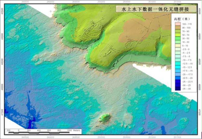 / ]$ G: F. s3 l0 {; D ~ 图1 水上水下数据一体化无缝拼接效果图[10]