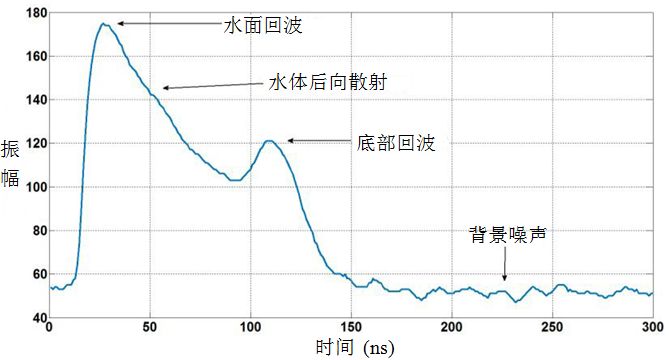 图3 机载LiDAR测深波形示意图 ! q! B& S% X2 B' T/ V% j