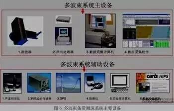 测深仪换能器、工控机,定位系统(GPS),需要配合实时验潮;作业方式为船体安装,走航测量,岸上验潮或RTK潮位修正。其中的关键词是:时深转换、声速改正、波束角、运动改正。 ) D# ^# ^) M( d, C