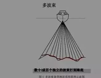 7 m% }; U [. C: ?9 B 图5 多波束条带测深系统原理示意图 ; g: h3 T6 [& v0 x3 G# O# Y5 \