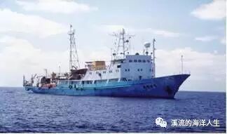 & y9 x0 h9 X* T “海洋四号”远洋综合调查船:长104米,满载排水量3300吨,航速18节,续航力6000海里,无限航区。
