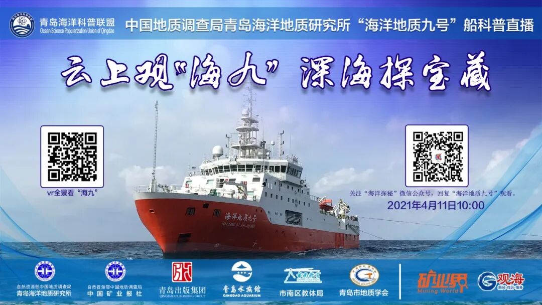 4月11日,青岛出版集团联合青岛海洋地质研究所、青岛市地质学会、青岛海洋科普联盟、青岛水族馆、青岛市市南区教育和体育局、蛇口海事局、蛇口海关、中国矿业报社、观海APP共同举办“海洋地质九号”船科普直播活动。