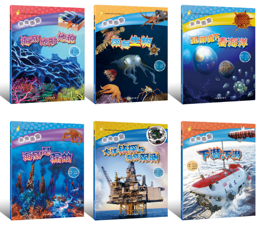+ R R5 [6 W2 Z! f5 a 分册:《深海生物》《显微镜下看海洋》《海底是漏的》《大洋钻探与海底观测》《海底地形地貌》《下潜,下潜》 . B% C8 r" y; F" R! q