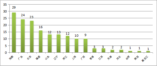 : D; B' y# [0 _, |) n$ Q 名录反映出,我国海洋环保社会组织的分布地域性特点明显。我国海洋环保组织全部分布在东部沿海地区,尤其是东南沿海地区,这反映出海洋环保组织分布具有明显的地域性色彩。在2014年名录中,占据前三位的海南省、广东省和福建省均是东南沿海省份。在本年度名录中,海洋环保社会组织数量前三位的社会组织分别是海南省、广东省、北京市,基本都位于沿海城市。需要指出,海洋环保组织数量和经济发达程度并不成正比,比如,上海经济发达但海洋环保组织数量并不占据较大比例。 & I0 E! d' v' P