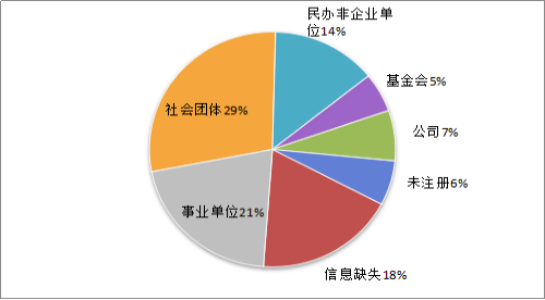 : h$ j; t* I8 s5 x* P+ m 根据本年度名录的数据统计,我国有37家海洋环保社会组织注册为社会团体,占比例最大。2015年版名录中增加了事业单位这一类别,有27家事业单位是海洋环保社会组织的支持类机构。由于信息有限,23家海洋环保组织无法确定其是否注册和注册类型。由此可知,在海洋环保领域中,还是社会团体和民办非企业单位占据了大多数。其他类型,诸如基金会、公司等比较少。 ! l( @* c9 B( @7 E