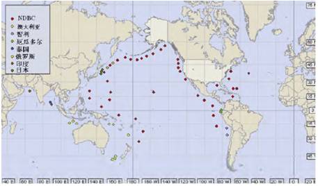图8 美国NOAADART海啸浮标全球分布图