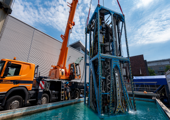 MeBo200海底钻机在进行水池测试(图源:MARUM)