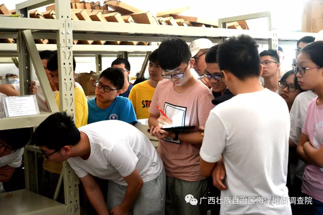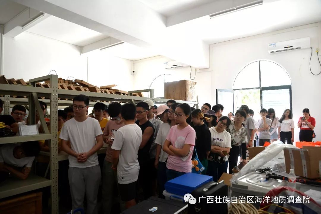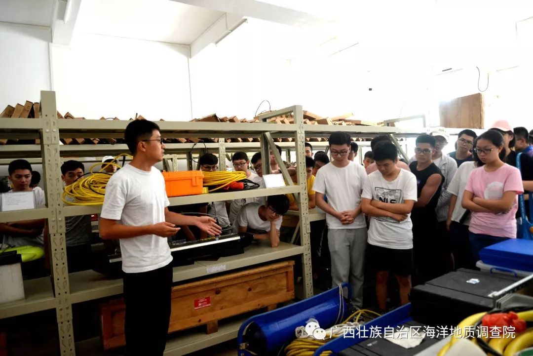 4 |8 Z, k, W4 K8 g6 A 5月15日,来自广西大学海洋学院2016级的近60名大学生来到我院侨港海洋基地,参观了我院海洋地质实验室、海洋仪器设备库及海洋地质科普陈列室。 1 a9 x& G2 \; w t: A