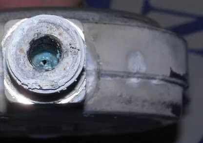 6 E3 T6 ]5 U& t; V# P' e1 R 让深度表指针工作的原动力就是海水,导入海水的感应接口从外侧看小孔直径为2~3mm,而实际波登管自身的直径会更细。因此,如果在清洗仪表时掉以轻心,再不加以正确地养护,那么盐分、砂粒或沉积物的堆积一旦发生堵塞,将导致外界海水无法进入波登管,影响指针的工作效能,甚至完全罢工。敲黑板:积盐、结垢和腐蚀是装备损坏的头号宿敌。那么,想要感应接口保持良好的状态,我们到底应该做好哪些日常的清洁工作?