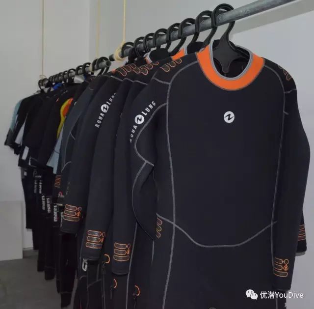 晾干潜水衣。 . m. C. J/ M! Z \