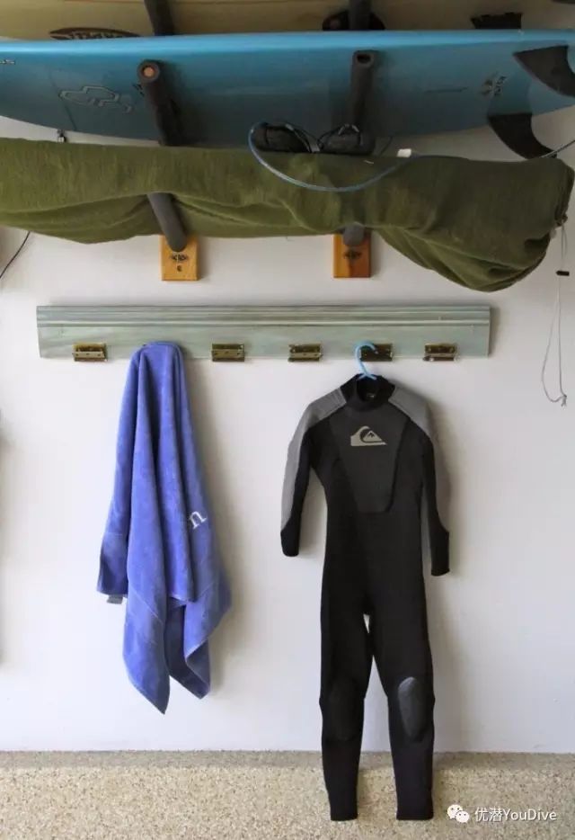 清洗好你的潜水衣之后,把它们挂在宽大的衣架上面晾干。