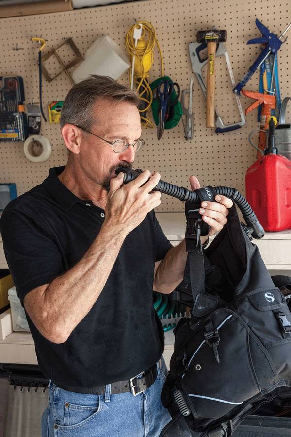 定期检查你的面罩带, 蛙鞋带,换气装置,调节器嘴,和软管磨损的迹象。 % j" Q/ S; f3 m2 ~2 \$ [ H7 O