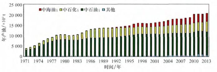 5 _9 a' l6 D( O! C0 [ 图1 全国石油产量构成柱状图[1] ( A$ y. k+ ^6 W: N