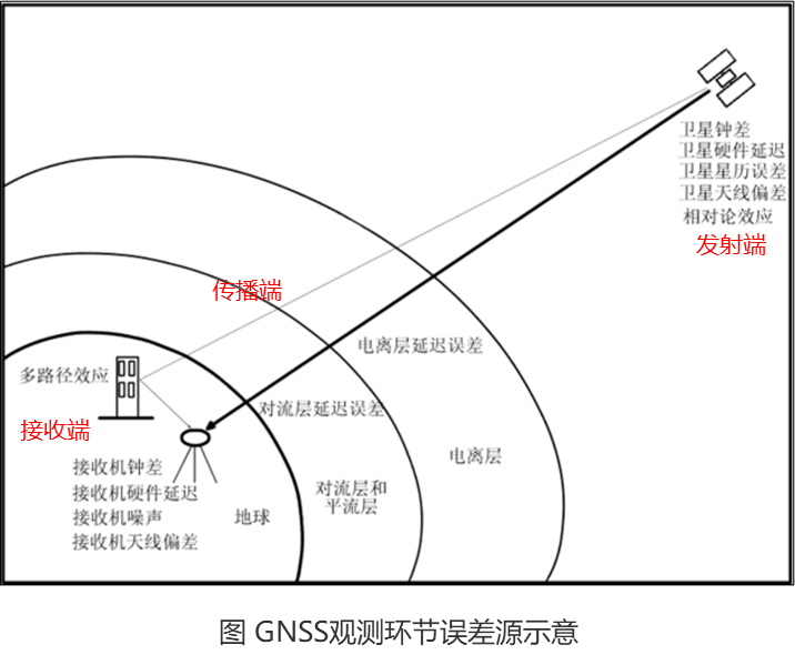 " x/ N1 G) ]2 g4 q/ c, m 影响GNSS定位精度的主要原因,是误差。误差既来自系统的内部,也来自外部。例如穿透电离层和对流层时产生的误差,还有卫星高速移动产生的多普勒效应引起的误差,以及多径效应误差、通道误差、卫星钟误差、星历(卫星位置和速度)误差、内部噪声误差等等。我们可以从三个方面来考虑:发射端、传播端、接收端。