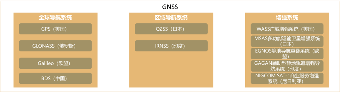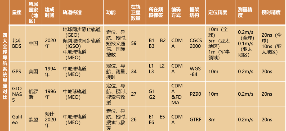 全球导航系统:卫星发射全球覆盖,能够在全球范围内实现定位,包括美国的GPS、俄罗斯的Glonass、欧洲的Galileo、中国的北斗(BDS)系统,即四大全球导航系统。 9 m& ~" R; {3 W4 L! f