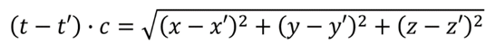 总结:一个公式里有4个未知数(x,y,z,t),需要4颗卫星的坐标值组成4个四元方程求解,这就是为什么用户终端想要解算出自己的准确位置,至少需要4颗卫星。