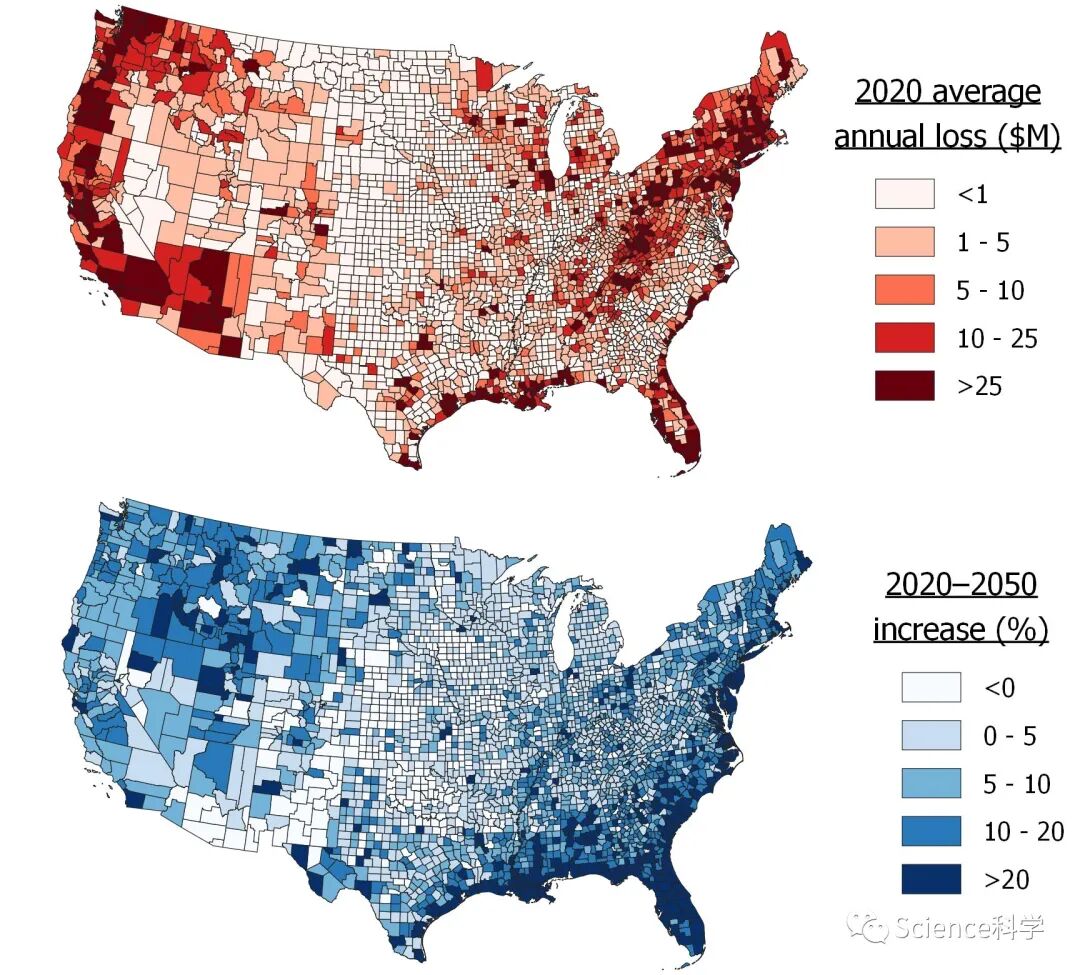 , V; A4 s$ ^7 Z* F3 Z' c/ H1 z 研究:气候变化将使洪灾成本飙升日前发表在《Nature Climate Change》上的由布里斯托尔大学领导的研究采用了先进的建模技术来进行巨大的计算--其预测在不到30年的时间里,年平均洪水损失将增加26.4%,从目前的320亿美元增至406亿美元。 通过分析全美范围内的财产资产数据和详细的洪水预测,国际领先的洪水风险科学家团队首次对美国的洪水风险进行了全面、高分辨率的评估。对经济损失的估计--包括对房屋、企业及其物品的损害--是基于2021年的美元价值,因此考虑到通货膨胀因素,实际数字可能会大得多。 虽然研究显示,白人人口比例较高的贫困社区目前面临最大的危险,但未来洪水风险的增长将对大西洋和海湾沿岸的非裔美国人社区产生更大影响。预测的人口变化还显示出对洪水风险的巨大影响,跟气候变化本身的影响相比,会导致四倍的增长并使成本进一步飙升。 这项研究的论文第一作者、布里斯托尔大学世界知名的卡博特环境研究所的荣誉研究员Oliver Wing说道:“气候变化跟人口迁移相结合带来了洪水风险的双重打击,其财务影响是惊人的。典型的风险模型依赖于历史数据,这些数据没有捕捉到预测的气候变化或提供足够的细节。我们使用先进科学的洪水模型的复杂技术并对未来的洪水和人口将受到的影响有着更准确的描述。” “绘图清楚地表明,除了主要承担历史风险的较贫穷的白人社区外,黑人社区在一个变暖的世界中也将受到不成比例的影响。这两个发现都是令人担忧的。这项研究呼吁采取行动并加强适应和缓解工作以减少洪水对人们生活造成的破坏性经济影响。” 这项研究是跟纽约、加利福尼亚和费城的大学的专家合作进行的。论文共同作者、该大学卡博特环境研究所和地理科学学院的水文教授Paul Bates说道:“目前西方社会的洪水风险已经很高了,但气候和人口变化有可能使这些损失大大增加。这种增加将发生的相对较短的时间尺度意味着我们无法依靠脱碳来减少风险,所以我们必须更好地适应现在和未来的情况。” 03