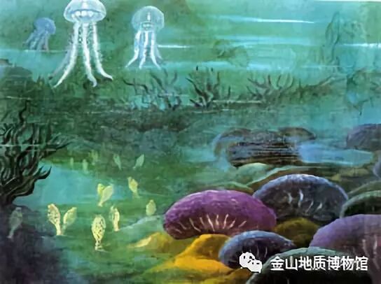 # E3 o- Q+ E, c G8 f( [) u9 U& M 元古代(25~5.45亿年前),在国际上由于研究程度低,只是晚元古代最未一个纪——震旦纪已由中国提出并得到世界地层委员会认可,其余均未细分纪。在我国对元古代地层进行了大量的长期的研究,并从早到晚细分出:五台纪、滹沱纪、长城纪、蓟县纪、青白口纪和国际上已经认定的震旦纪,一共6个纪。在元古代地壳发生强烈活动,地壳岩石发生变形变位,古板块开始运动,一些地区隆起形成高原和高山,另一些地区下陷变成平原或海洋,但总的趋势是大陆不断扩大。在大气中,气体发生巨变,变成以二氧化碳为最多。在海洋里,真核生物开始出现并大量繁殖。之后又出现了结构极简单的多细胞生物。海洋里最为繁盛的是菌藻植物,它们的活动促成二氧化碳和海水中的钙镁等元素相结合,于是碳酸钙镁等物质便沉淀在海底,使大气中的二氧化碳减少,氧和氮的含量逐步增加,海水中形成以氯化物为主的多种盐类。在这种环境中,生命加速发展,大量的蓝绿藻、红藻、褐藻、硅藻以及大量的藻迭层石先后繁盛起来。因此,这一时代被称为藻类时代,在元古代末期还出现了埃迪卡拉动物群,这是一群很小很脆弱的其结构极简单的微体动物,由于演化进入误区,没有成功,很快便全部绝灭了。 8 w7 ]% i9 D5 g8 K2 q/ F