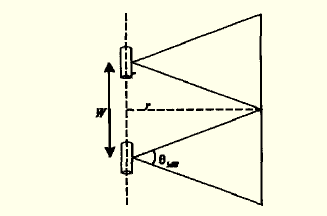 : C$ x4 u/ Y8 i1 w6 Y' A: P 合成孔径声纳技术使用真实孔径的运动,在多个位置发射和接收信号,通过相干处理合成一个虚拟的较难实现的大孔径,从而获得比真实孔径高的分辨率。对于距离为r的目标,声纳波束的照射宽度为: / ~, ~% a- A7 l