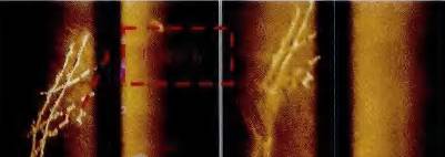 1 E8 |) p5 V& k" | 为了验证DF-SAS的探测效果,我们选取海底管线密集的油田区进行试验。实验前,对试验区海底的管线情况进行了解,对管线的位置和埋深,哪里有裸露管线等基本掌握,有针对性地布设试验测线。在实际的海底管线探查实验中,首先采用双频双侧合成孔径声纳对海底管线进行探查,然后根据分析结果,在认为的管线裸露区用携带声学前视声纳和光学摄像的ROV进行探查确定裸露管线,对认为的掩埋管线,使用浅地层剖面仪进行管线探测,以验证管线的存在及埋藏深度。试验完成声纳数据与传感器定位数据、地理信息数据的融合,能够实现单侧300m,双侧600m的测绘宽度,该范围内成像清晰。