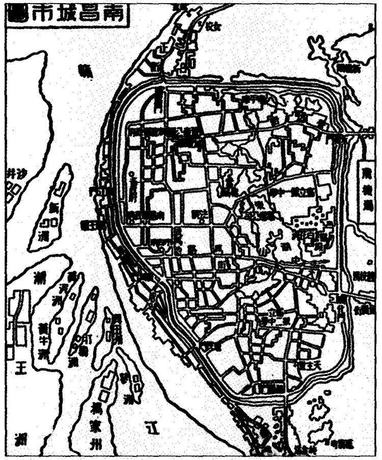 . X! D! \+ L: O( F6 d7 A 1927年8月1日,人民军队在南昌起义中诞生时,就开启了军事测绘事业的历史。创建初期,人民军队没有专门的测绘机构和专职的测绘人员,部队所用略图或行军图大多由指挥员亲自绘。图为南昌起义部队收集并使用的《南昌城市图》。' J; h" P. U- h4 O