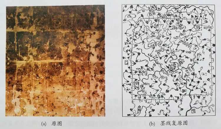 4 t) N' w9 @ n 古代,中国测绘和地图绘制有着辉煌的成就。在中国,关于地图的传说,可以追溯到4000年前的夏代或更早的时期。目前,中国发现的最早的军事地图,是1973年在长沙马王堆西汉墓出土的《驻军图》。该图用黑、红、青三色彩绘,比例尺在1:8万至1:10万之间,绘图范围为今湘南地区,是汉代长沙国的一部分。图上,非常清楚地标绘有军事部署和作战意图。可见,汉代军事地图制图已经达到很高的水平。图为马王堆出土的《驻军图》(来自《中国地图学史》喻沧、廖克编著,测绘出版社2010)。) s( b8 C$ E; o! k6 a9 K* h( `
