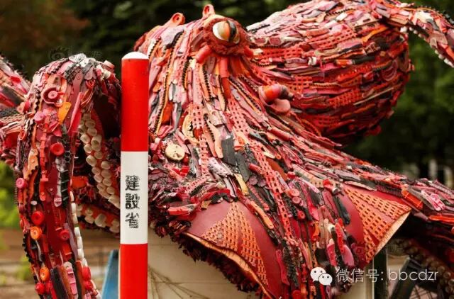 这些垃圾中包括了塑料浮标、网球、玻璃瓶、白炽灯泡、木制船桨、螺丝、铰链、发胶瓶、安全帽等等,动物园对这些垃圾进行了分类然后制成了艺术品。