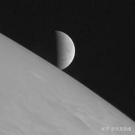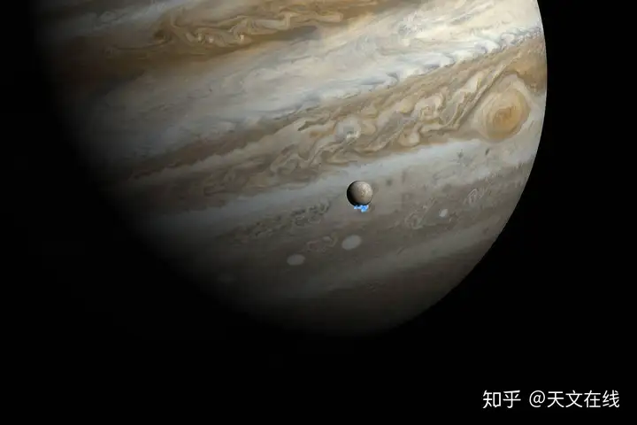 4 X; m4 K9 u: `+ G3 Z7 ~- P2 @ 图解:木卫二正在升起。这颗冰冷的卫星悬挂在2007年@美国宇航局新闻视野图像中的木星云顶上方(来源:美国宇航局喷气推进实验室-加州理工大学) 7 N. Z C+ y& c6 C; M# ?: F