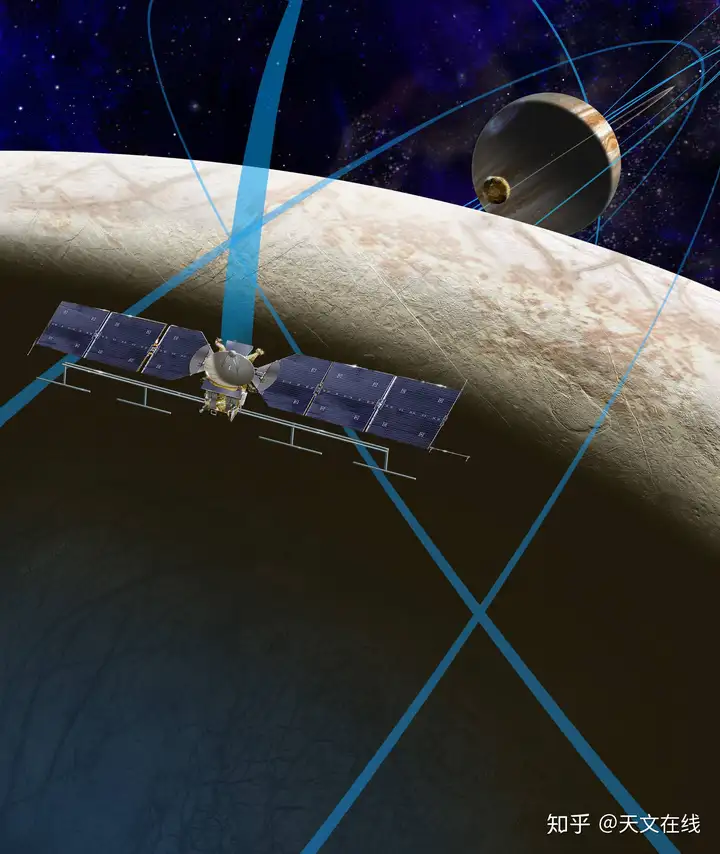 由太阳能供电的木卫二探测仪将会进入绕木轨道开展为期三年的任务,以最小化可能损害航天器的强烈太空辐射的暴露面积。 9 j' w4 r: M5 |* s