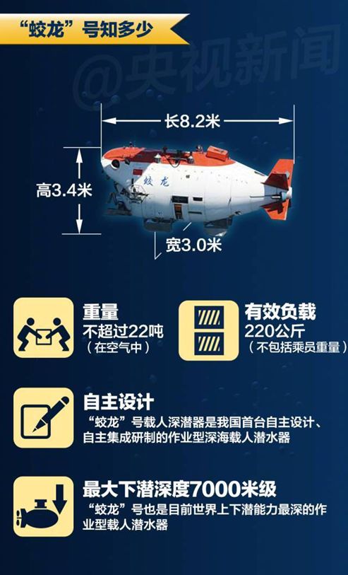 中国是继美、法、俄、日之后世界上第五个掌握大深度载人深潜技术的国家。在全球载人潜水器中,“蛟龙号”属于第一梯队。作为潜水器家族“三龙”之一,和无人无缆的“潜龙号”、无人有缆的“海龙号”不同,“蛟龙号”的优势在于定点悬停作业。科学家通过搭乘“蛟龙号”可以对海底进行直接观测和取样,对海底某个点进行“解剖麻雀”式精细化研究。 / I: ~: i: H# N' ]# ~ ?