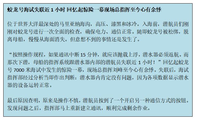 / Z" K5 `- I" ~* ]' _9 C “蛟龙号”可“断臂”求生