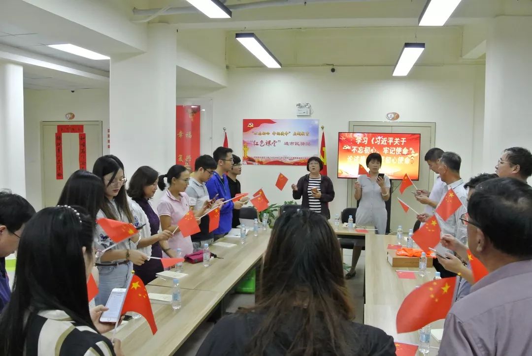 " M' {& v h' P1 N, A! c. s 最后,全体党员在党支部书记的带领下伴随着美妙的音乐,一齐合唱了歌曲《我和我的祖国》。  / {5 k( x, x& e' ` H) b. g" a
