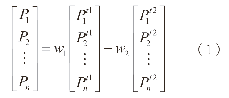 台风最佳路径数据采用文本格式保存,是混合数值和字符型信息保存的一维数组。首先从台风最佳路径数据选取过境南海海域的时段,针对这些台风时段的数据,采用线性插值方法将6 h一次的定位数据插值到1 h的时间分辨率。由于地理网格化的船舶密度可能和台风中心距离密切相关,所以这里还要利用地球坐标最近距离算法求解每个网格中心点和台风中心的绝对距离。NCEP再分析资料是采用气象上标准的网络通用数据格式(network common data form, NetCDF)存储的三维资料。由于时间分辨率不高,这里采用时间权重方法进行插值处理,计算式如下: 1 W8 M8 ~$ d# X" q- ^