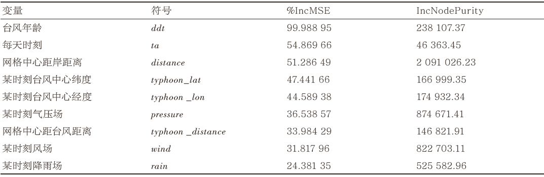 表3 随机森林模型特征重要性排序 6 @% Q n& K* R: U( F