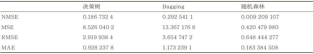 针对需要预测的问题,选择了3种主要的机器学习模型来训练前面预处理的多源异构数据集。模型包括决策树、Bagging和随机森林方法。除了以上3种模型外,还可以选择神经网络、支持向量机(support vector machine,SVM)、XGBoost等回归模型,本文暂不做详细探索。