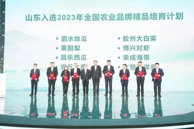11月12日上午,“好客山东 好品山东”2023北京推介活动“齐鲁灵秀地 品牌农产品”专场推介会在北京展览馆举行。山东处处有好品,村村有特产。推介会现场为山东入选农业农村部2023年农业品牌精品培育名单的品牌颁奖,分别是荣成海带、文登西洋参、泗水地瓜、莱阳梨、昌乐西瓜、安丘大葱、胶州大白菜、博兴对虾。