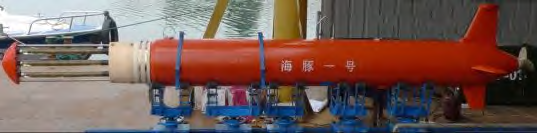 例如,我国研制的MerMan-100型AUV配备有中科院声学所研制的声学设备,主要针对海洋监测,水质检测,军团协作作业,母船、港口和航道防务等使命任务设计。该AUV的技术特点是采用模块化设计思路,根据不同的作业任务增减不同作业模块,有利于便携作业。海豚一号是一种小型AUV,搭载浙江大学研制的合成孔径声纳,主要用于探测水下小目标和掩埋目标。该型AUV的实物图如图所示。