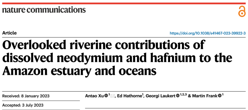 2 U- x3 [2 m2 s# C 题目:Overlooked riverine contributions of dissolved neodymium and hafnium to. N$ y V# Y8 w. T1 C2 Q! i