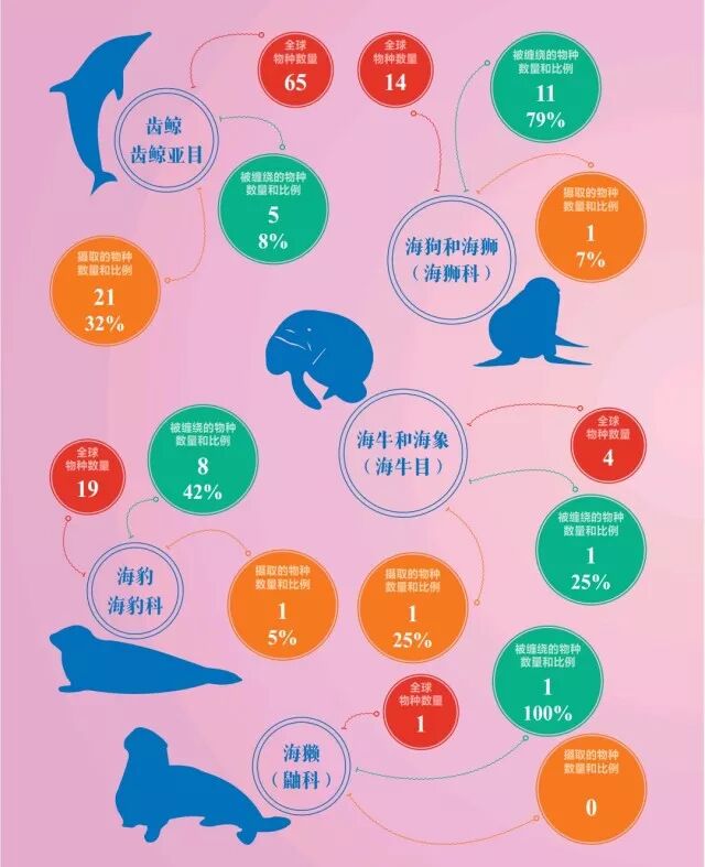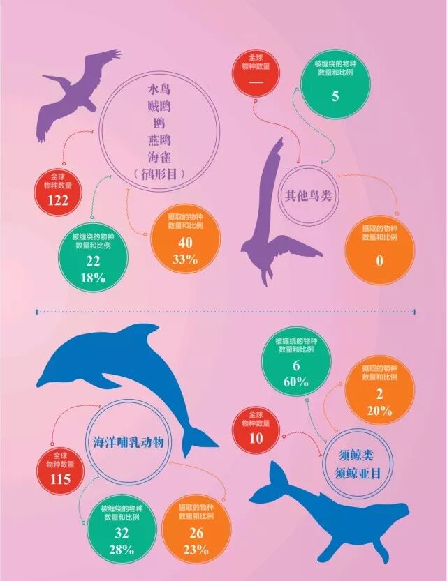 如此巨量而又难于降解的塑料,成为海洋环境中的重要新型污染源,甚至可能已经开始进入食物链。总结起来,海洋中的塑料垃圾大致有以下主要危害: 1直接缠绕杀伤: