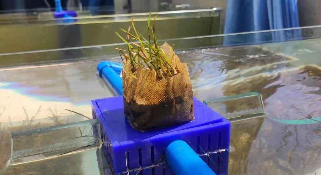 2020年11月,于培育温室的循环水系统中播种鳗草种子1.8万粒,至2021年4月13日,鳗草幼苗总计成苗2466株,种子至幼苗的建成率13.7%。