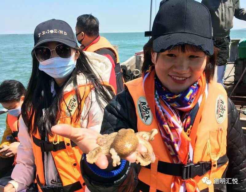 4月14日上午,来自全国各地100家研学机构的负责人(校长)莅临威海观摩海洋生态研学,观摩团一行首先来到了威海德明省级海洋牧场示范区,实地了解了威海海洋生态研学产品开发情况,并一同体验了小海参研究员、探密海洋科普馆、织渔网、寻访“老渔王”等特色海洋研学项目。, b; r0 k0 H4 u5 K