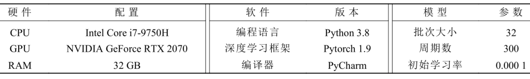 5 W. l' K' Z# d7 p1 ]) @3 Q# f: \ 本实验利用1台搭载RTX2070显卡、32GB内存的计算机进行训练,使用Python3.8作为编程语言,基于Pytorch1.9深度学习框架,将数据集输入搭建好的模型进行训练。模型每批次输入32张图片,训练300周期,初始学习率为0.0001(表2)。在训练过程中记录损失函数和准确率变化。每批次训练完成后,学习率和权重自动调整,以寻找最优值。验证集与训练集进行相互验证,当准确率和损失函数稳定时即停止训练并保存权重参数。根据实验表现调节其他超参数。评价训练过程的指标是准确率和损失函数。 + ?# d$ C& H/ J6 k7 N. x