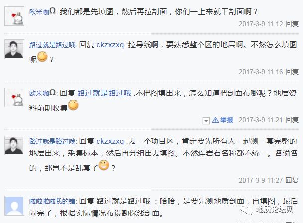& Y( R& A" l! ^' Q+ k  白天测完导线,晚上回家整体白天的剖面。因为之前在原单位并没有过多的接触作图,所以这方面我还是很欠缺的。所以,我就想学习一下,好在项目负责看我好学,安排我画一条剖面,我以为就我不怎么会,结果发现那几个也不会······我就想那你们来这,学会了什么?之前接触的MAPGIS基本在外面工作的两年都忘的差不多了。这时用的又是新的软件叫数字填图系统,以及后面会讲到的SECTION。不过好在有MAPGIS的基础,这两个软件学起来并不难。很快就能熟练的画图了,还时不时的指导那些在我前面来的前辈。说到这,我简单介绍下这个项目的人员,项目7个人。项目负责四十多岁(主要负责我们的饮食起居,以及事情的协调工作,后面称为A师傅,地校毕业),副负责也是四十多(主要的技术负责,称为B师傅,地校毕业),一个三十多的师傅,大家都喊他X哥(电工师傅转行,父辈是地质队上的),我也就跟着喊了,后面称之为C吧。还有一个比我大一岁的小伙,长的白白嫩嫩的,开始还以为比我小呢,没想到比我大。是某市著名的地校毕业的,来单位3年了,后来才知道他可是院里培养的候选人之一,后面称为D。还有俩,一个援藏过来的西北汉子,白胖白胖的,看起来比我还大,实则小我3岁,称为E,比我先来半年,也就是我年末来的,他是年中来的。另一个跟我是校友,我学弟,早我一年进来,称为F。我房里住的是C、F。剖面很快就测完了,对整个项目区的地层有了一个大致的了解。然后就开始分组填图,填图工作对于我来说应该算是驾轻就熟的,但是我还是表现的很谦虚,希望各位前辈带带我。值得开心的是B师傅带我。这里说个题外话,B师傅是个很实在的地质人,对于地质的研究可谓是深入骨髓,孜孜不倦,求真务实。以至于很多人对于他的偏执有种莫名的害怕,但是对于初出茅庐的我来说,我是一无所知的,所以当初说要填图的时候,其余同事都赶紧组队,就怕分到跟B师傅一组。而我就说了一句,我跟B师傅吧。此时大家都投来偷笑或是开心的微笑,临出发时还对我说一句,多多保重!其实选择B师傅,我也是觉得这个师傅可以教会我很多东西,只要你爱学,他几乎什么都告诉你,就怕你不懂。有一身过硬的本领。果然,如所有同事所料,我们从出门就开始爬山,早上8点爬到了11点才到矿区边界,坐下歇一歇,吃个自己带的饼,喝口水就当吃了午饭。吃完午饭,我还没歇,师傅拔腿就走,我紧跟其后,就开始了四处敲敲打打,那个树林密的哟,简直是密不透风,又陡,时不时就有可能滚下山崖。对于第一次出来的我实在是太受不了了!!!!但我不能表现出来,所以尽管很累,我还是会很精神的问师傅,这边的岩性跟这个产状不符啊,中间会不会有什么构造之类的?师傅就会带着我来回的穿树林,来来回回的分析,其实那个时候我都不知道我问了些啥,反正就是跑。大冬天的天黑的早,本来出门的时候讲下午4点往回走。结果我跟我师父俩人填到五点多,我也不好意思说往回走。于是就一边填一边往回走。还好带了手电筒,跟着师傅一路穿着树林子往回走,结果动不动就迷路,我当时那个绝望,突然觉得我这辈子是不是就这么完蛋了?手机也没信号。不过还好师傅有经验,顺着河流走,总算走了出来,一出来不远就有信号,就接到了电话其余的同事都爬山来找我们了。那天晚上我们到家晚上10点。填图就是这么累,项目上是跑三天,休一天。但是最受不了的是,每天填图回来后,大家还要集中起来整资料,学习。开始的那一天,我不知道这几个师傅的规律,于是每天填完图,资料整了就洗澡上床睡觉了,但我发现就我跟那个土豪俩人上床睡,其余的人都在大厅里整资料。后来我才知道,原来这是B师傅要求的。后来,我也就加入了这个整资料的队伍,我们几个跟上课似的,每天吃完饭就开始整资料,整完资料也不能去休息,要设计明天的路线,要熟悉设计。每次就算没事也要陪着师傅一起熬到凌晨12点,白天可是跑了一天啊···就这样在项目上度过了整个寒冬季节,到了年底,我们终于回来了。是整个队里最后收队的一个项目了。回来过后,就通知我们领衣服,这点还是可以的。有点福利,还算有点盼头。因为有了B师傅的教导,我的知识突飞猛进。对于画图都游刃有余了,所以大家都很自觉的把探槽,剖面都扔给我画,A师傅还给我挂了个小组长的名分!不用说,土豪的那些任务图自然是A师傅布置给他后,他就直接甩给我的,除开C,D自己画外,我基本承包了整个项目的图件。对此,我还是很沾沾自喜的。一晃到了年底,局里就下文件要举行运动会。正好单位都收队了,所以大家都很积极响应,参加各项运动。我也不负众望的参加了乒乓球、羽毛球的队列。说实话,过了初中,高中,我几乎拍子都没拿过,所以,我觉得我这是自找死路。于是在茫茫海选的时候我就被OUT了。不过,有时间参加运动会,有精力看到这么一大群同事拔河打篮球踢足球,楼主可是很开心的。毕竟感觉熬了这么久还是值得的。