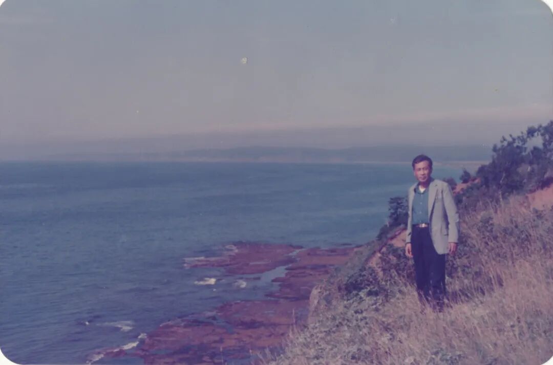 在台湾基隆海岸考察海蚀崖地质状况 他用毕生精力探寻海底资源宝藏探索南海地质与油气资源的奥秘 . w+ @; ~' a7 z