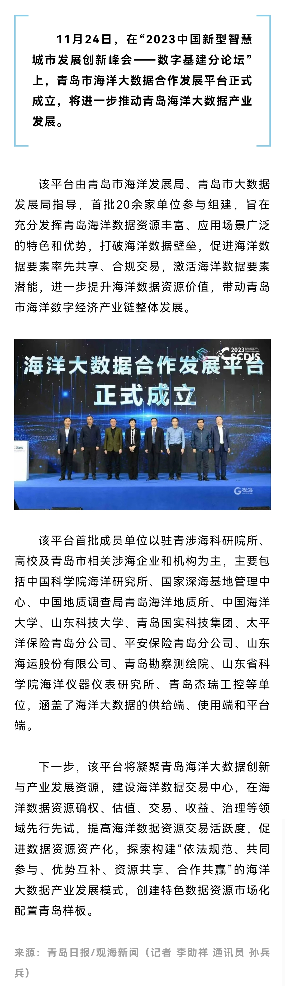 促进海洋数据交易,青岛市海洋大数据合作发展平台成立 ...