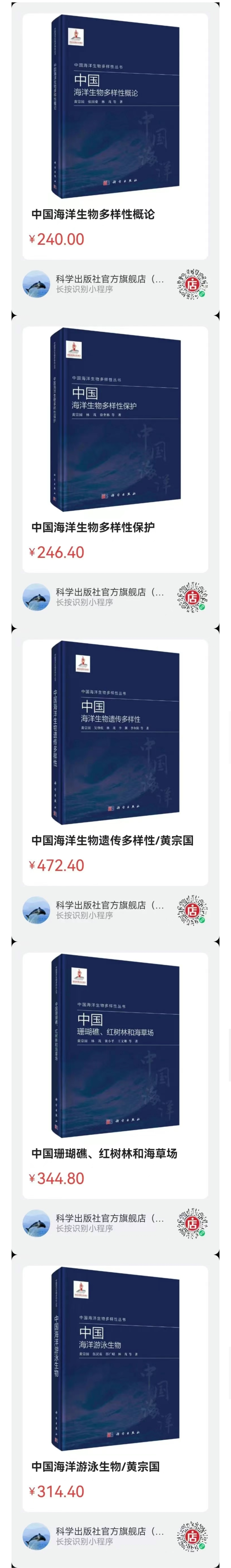 自然资源部第三海洋研究所黄宗国、林茂和王春光三位研究员,组织我国相关机构的近百位海洋专家学者,以世界海洋生物的研究作为背景材料,基于中国有资料记录的海洋生物调查研究成果,完成了“中国海洋生物多样性丛书”。丛书分为7 个分册:《中国海洋生物多样性概论》《中国海洋生物多样性保护》《中国海洋生物遗传多样性》《中国海洋浮游生物》《中国海洋游泳生物》《中国海洋底栖生物》《中国珊瑚礁、红树林和海草场》