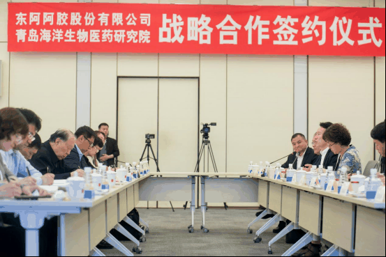 5月12日,东阿阿胶股份有限公司与青岛海洋生物医药研究院战略合作签约仪式在东阿举行。中国工程院院士、青岛海洋生物医药研究院院长管华诗及科研团队,东阿县委书记、县人大常委会主任雷霞,县政协主席朱凤泽参加签约仪式。东阿阿胶与青岛海洋生物医药研究院签署了《东阿阿胶活性成分差异化研究及其功能评价项目合同》。双方将利用资源优势和技术优势开展关键技术攻关、创新产品开发及科技成果产业化,形成国际领先的科技成果和系列特色产品。通过产业联盟、联合实验室或协同创新中心等建设,推动科技、市场、资源等深度融合,实现海陆统筹,打造产学研合作和科技成果产业化亮点工程,助力双方高质量发展。- x3 E% R5 ]. K' D4 q/ ^