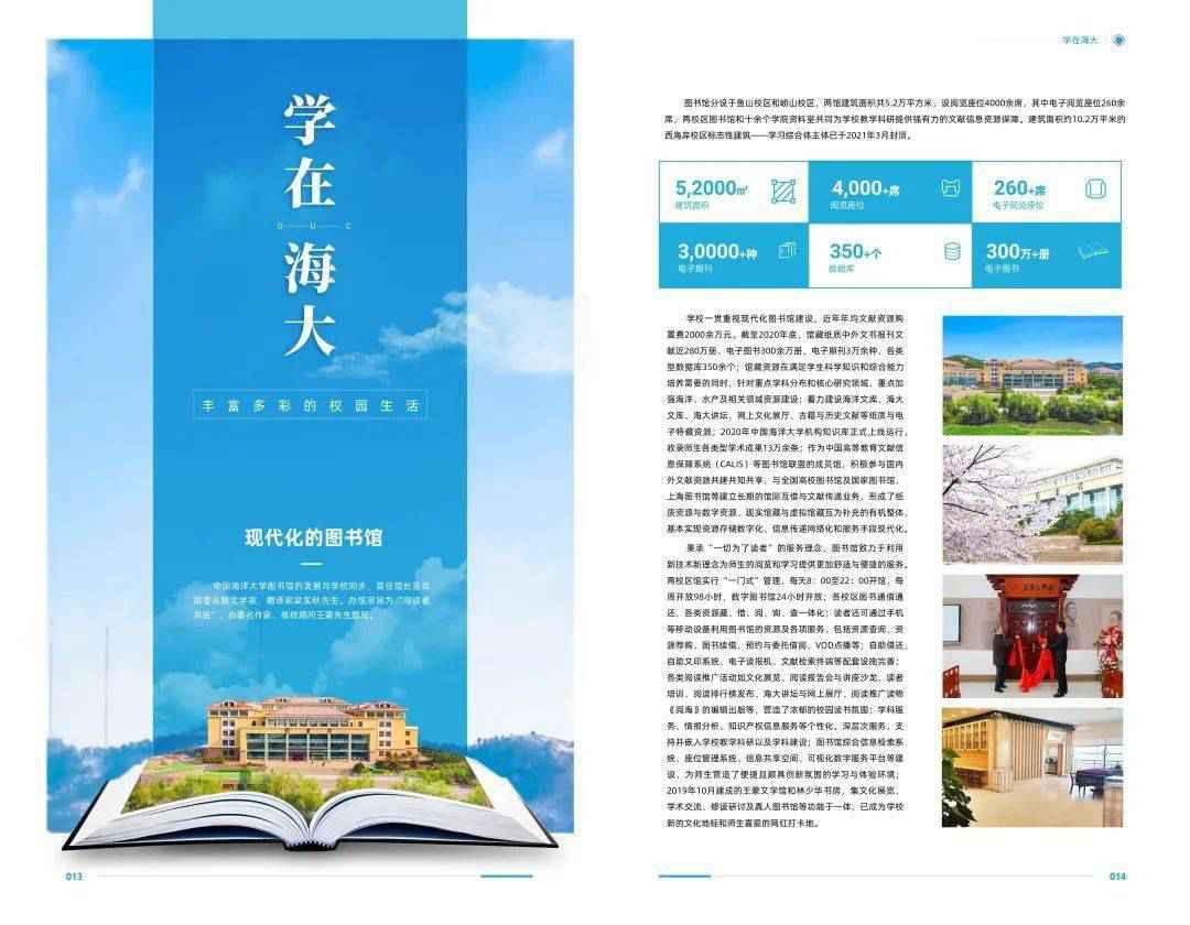 接下来,我们将向你全面展示中国海大的“硬实力”! “学在海大”版块将为你展示 教学与人才培养特色、便捷温馨的住宿和餐饮、丰富多彩的校园生活、广泛的社会实践和志愿服务机会、硕果累累的创新创业教育活动、完善的奖助学金体系。+ i# {6 X e! A) ^+ w; {