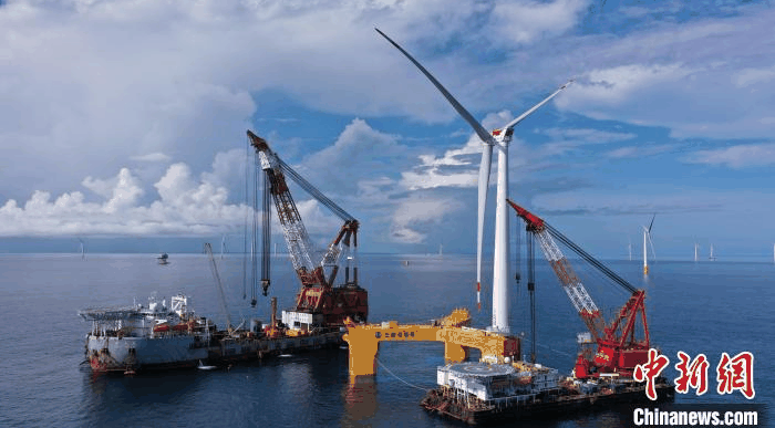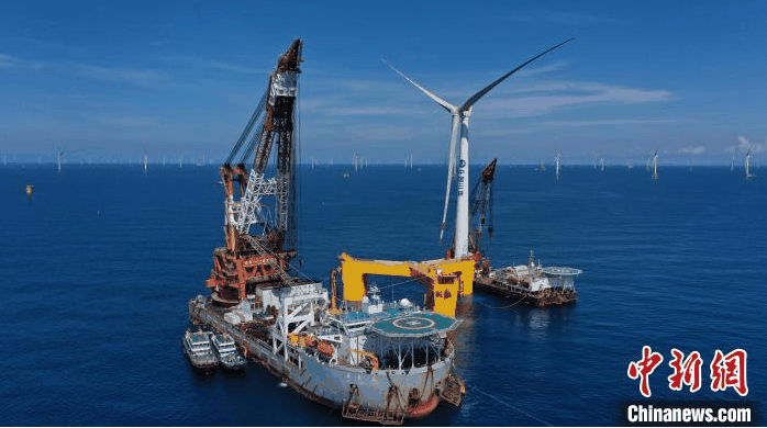7月13日,交通运输部广州打捞局在广东阳江海域成功安装全球首台抗台风型漂浮式海上风电机组。) F- Q! M+ S* v( ^% f9 \7 X